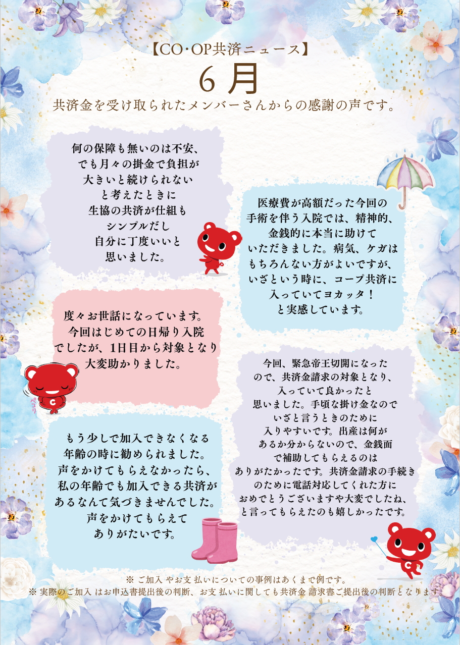 詳しくは「コープ共済」のHPをご覧ください。